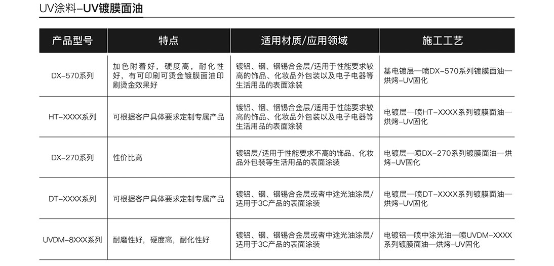 UV鍍膜面油