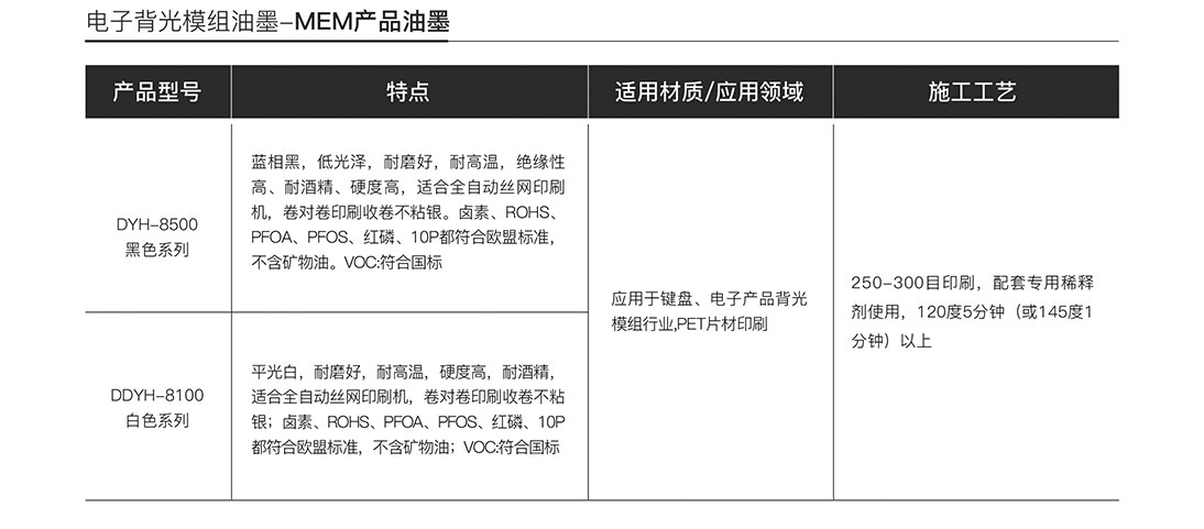 MEM產(chǎn)品油墨